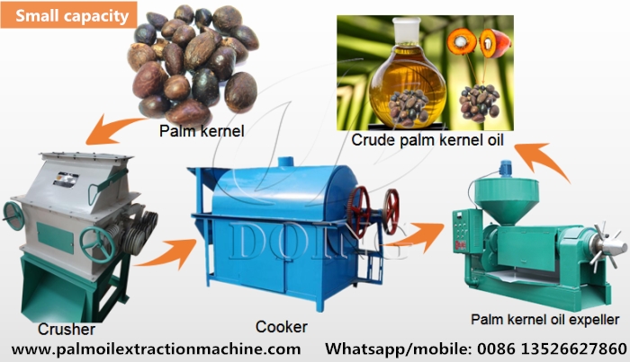 If you only have palm kernel oil expeller machine with small capacity, and best way to increase palm kernel oil yield is to add pretreatment equipment, such as crusher, cooker.